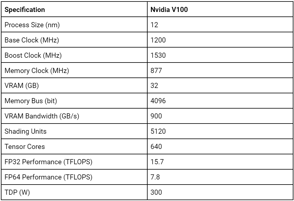 NVIDIA V100 GPU是一款专为深度学习和 AI 工作负载而设计的强大计算设备。如前所述,V100 GPU 具有 5,120 个 CUDA 核心和 32GB 高带宽内存 (HBM2),可提供出色的并行处理能力。