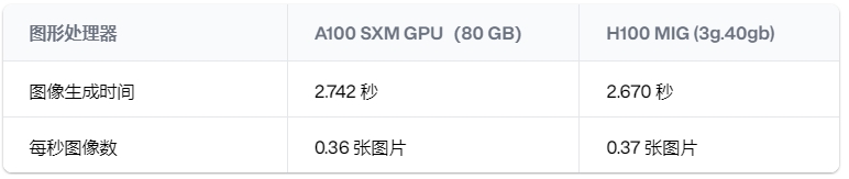 观察到的生成时间差异(小于 100 毫秒)在此类基准测试的预期运行间差异范围内。我们预计Fractional H100 GPU 在 SDXL 工作负载方面具有与 A100 GPU 相当的性能。